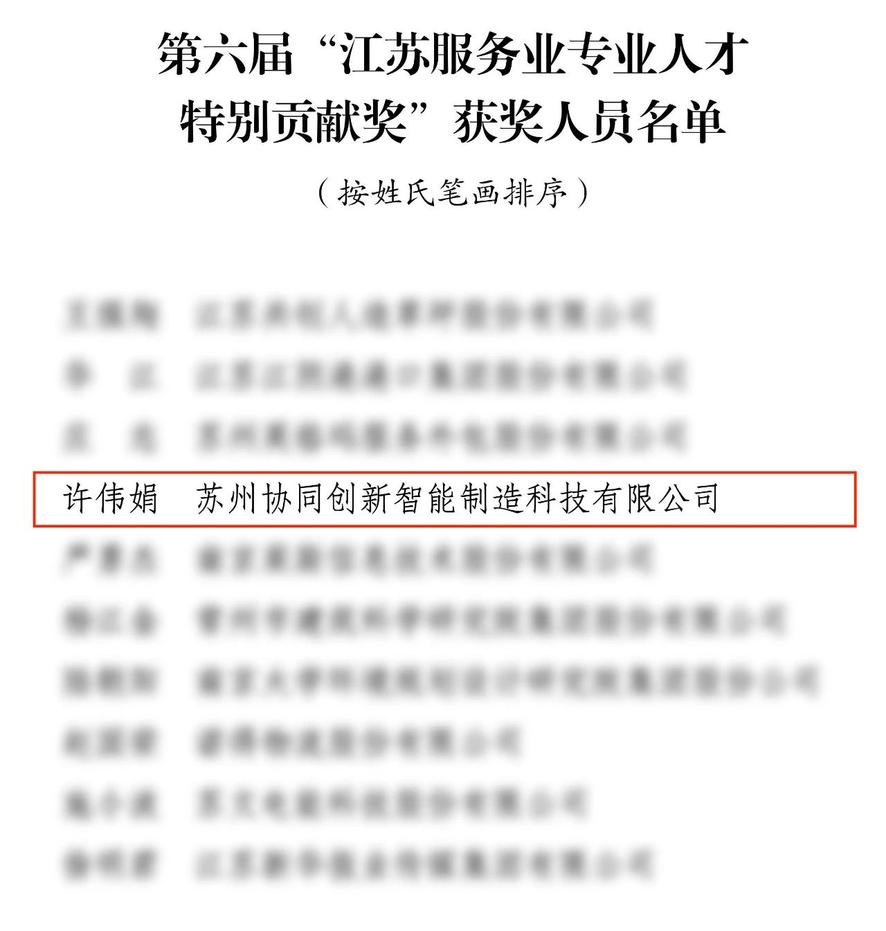 近日,省政府发布了第六届“江苏服务业专业人才特别贡献奖”获奖人员名单,全省共10人获奖,协同科技许伟娟成功上榜。