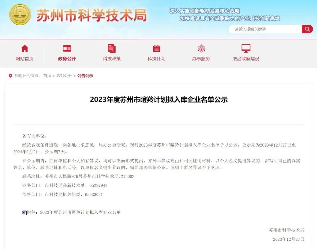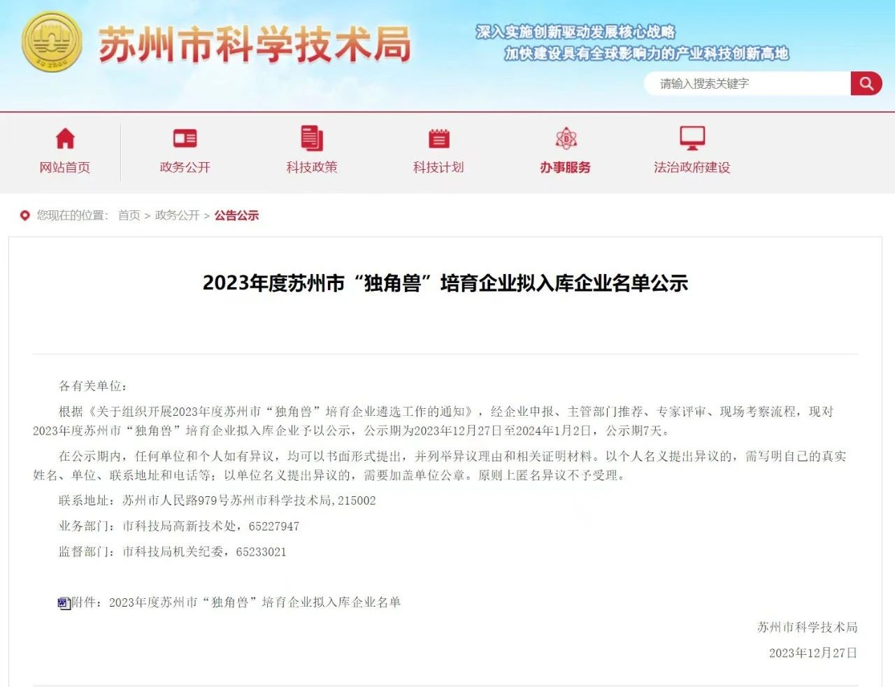 近日,苏州市科学技术局公示2023年度苏州市“独角兽”培育企业拟入库企业、2023年度苏州市瞪羚计划拟入库企业,协同科技成功入库!