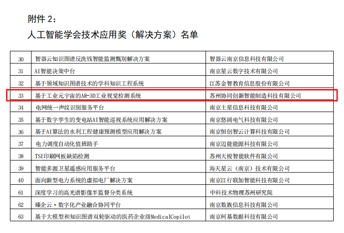 此次协同科技“基于工业元宇宙的AR-3D工业视觉检测系统”成功入选2023江苏省人工智能学会科学技术奖入围名单,是各级政府领导对协同科技在工业互联网方面工作的肯定及认可。